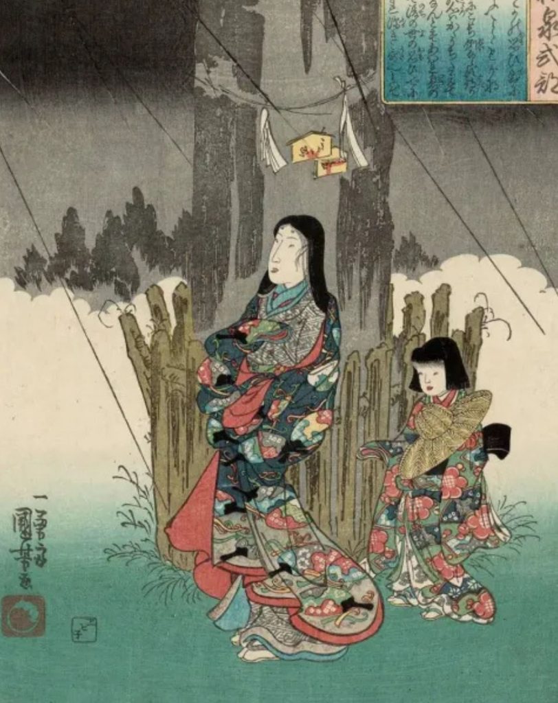 El Diario de Izumi Shikibu (Izumi Shikibu Nikki) narra su relación con el príncipe Atsumichi a través de una prosa delicada, alternada con poesía. Aunque parece una crónica autobiográfica, algunos estudiosos sostienen que es una obra elaboradamente literaria, una especie de autoficción en la que la autora construye un personaje idealizado de sí misma. La alternancia de poemas y narrativa recuerda a El relato de Genji, pero aquí el foco no es el mundo cortesano en su conjunto, sino el alma herida y deseante de una mujer que vive y escribe con intensidad absoluta.